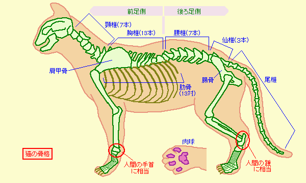 また、ネコが座ったとき、人間の「足の裏」に相当する部分をべったり地面につけて座っているところも、興味深いものがあります。