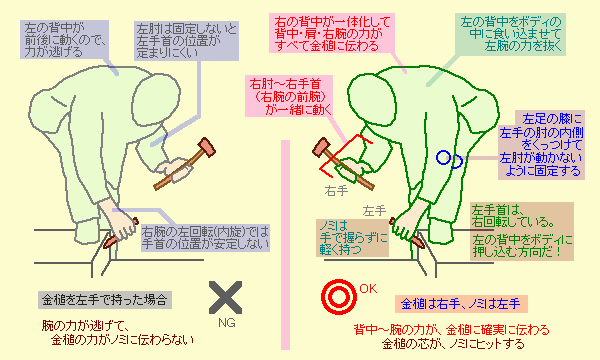 どちらの手で「金槌」を持つかによって、カラダ全体の動きが変わってきます。