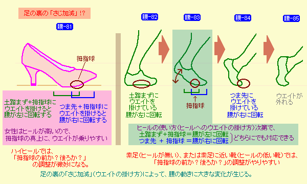 詳しい動き(足の裏と腰の関係)を、図にまとめると、こんな感じ。