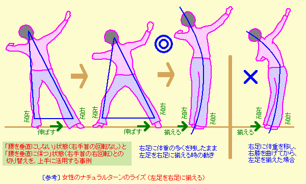 「右の手首の右回転(外側に回転)」によって、「腰を垂直に保つことが出来る」というのが、ありそうです。