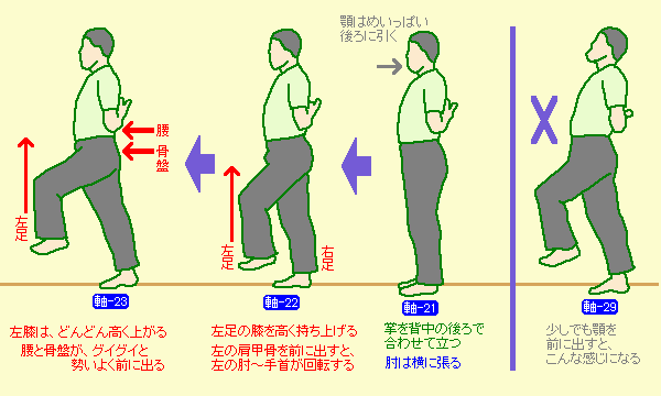 §9-09:(手首を回転)腰を使わない二軸歩行