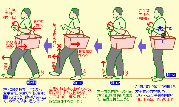 §9-09:(手首を回転)腰を使わない二軸歩行