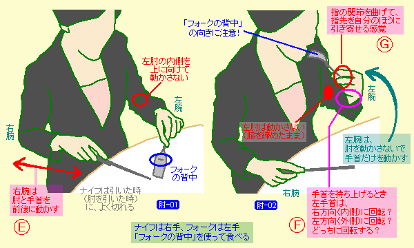(肘-11)(肘-12)では、右手でナイフを持っています。